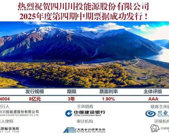 川投能源成功發(fā)行8億元中期票據