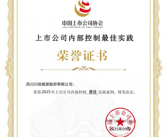 川投能源榮獲上市公司協會評選的內部控制最佳實踐案例